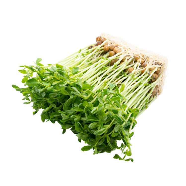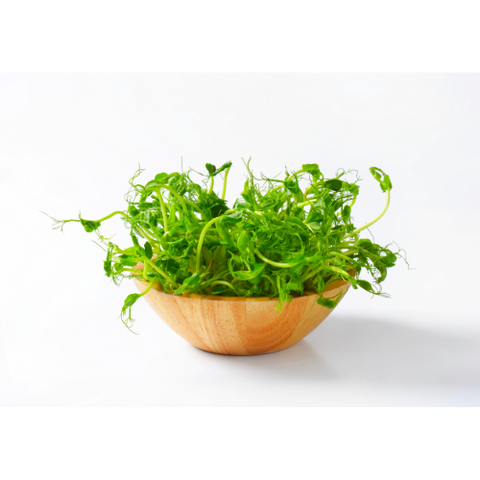 Peashoots are young, tender shoots of pea plants, known for their fresh, sweet, and slightly grassy flavor. They are often used in salads, stir-fries, or as a garnish for various dishes. Rich in vitamins and antioxidants, peashoots add a nutritious and crunchy element to meals.