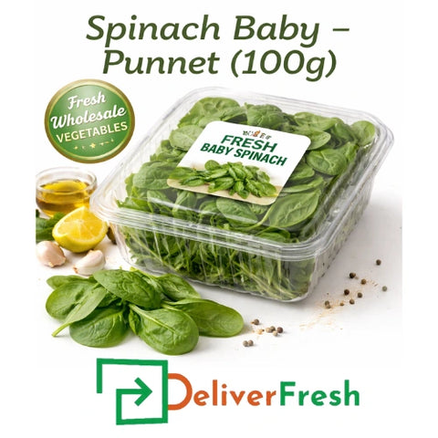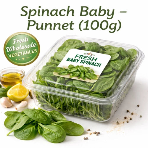 Buy Baby Spinach online—perfect for salads, smoothies, and cooking. Enjoy fresh, ready-to-use greens with convenience and quality.