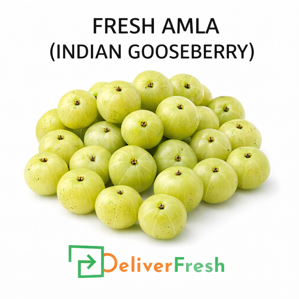 Discover the powerful health benefits of Fresh Amla (Indian Gooseberry) — now available at DeliverFresh Australia. Known for its rich Vitamin C content and immune-boosting properties, Amla is a superfruit loved in traditional Indian cooking, Ayurveda, and daily wellness routines.